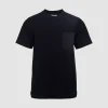Classic t-shirt features a convenient chest pocket, combining style and functionality.