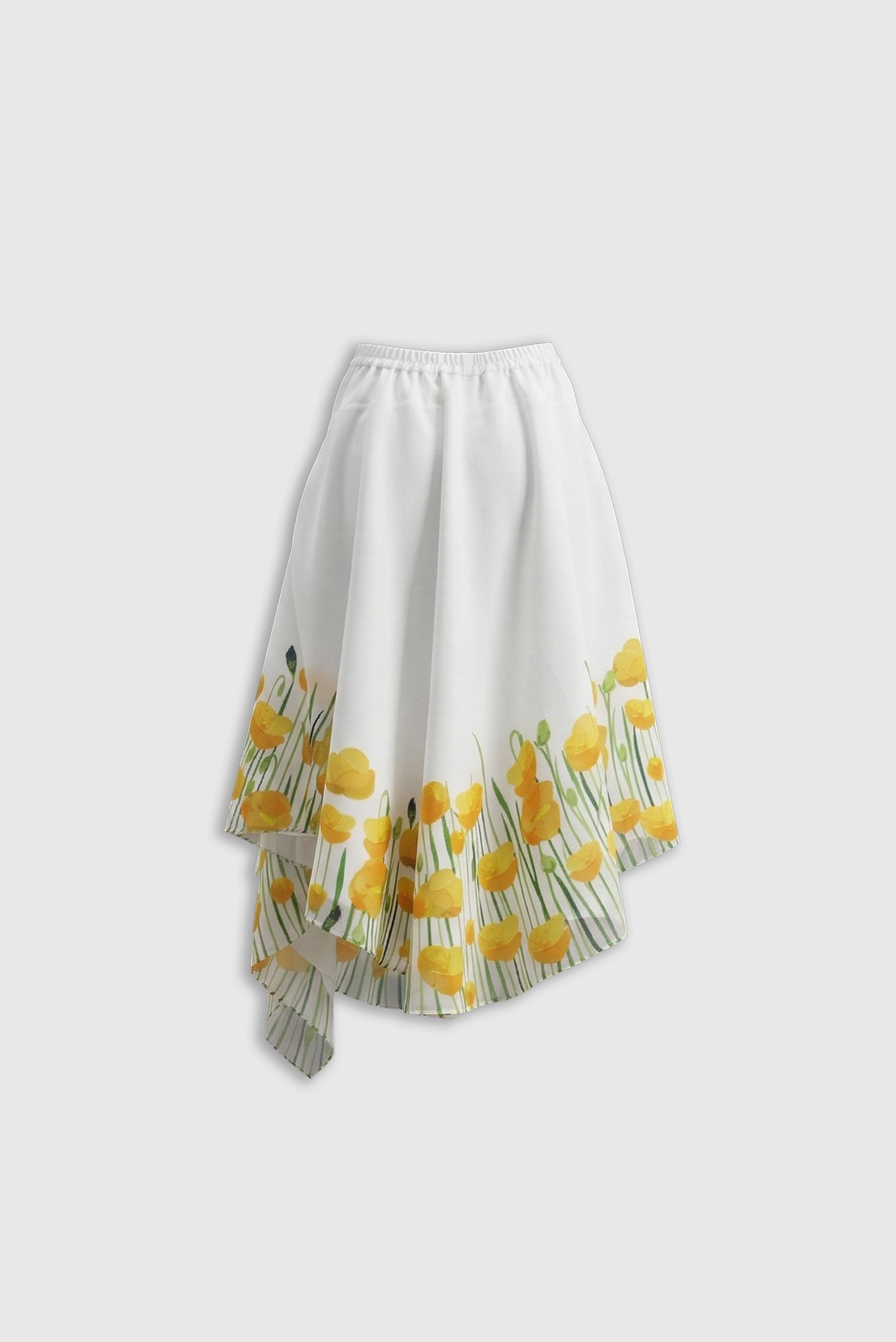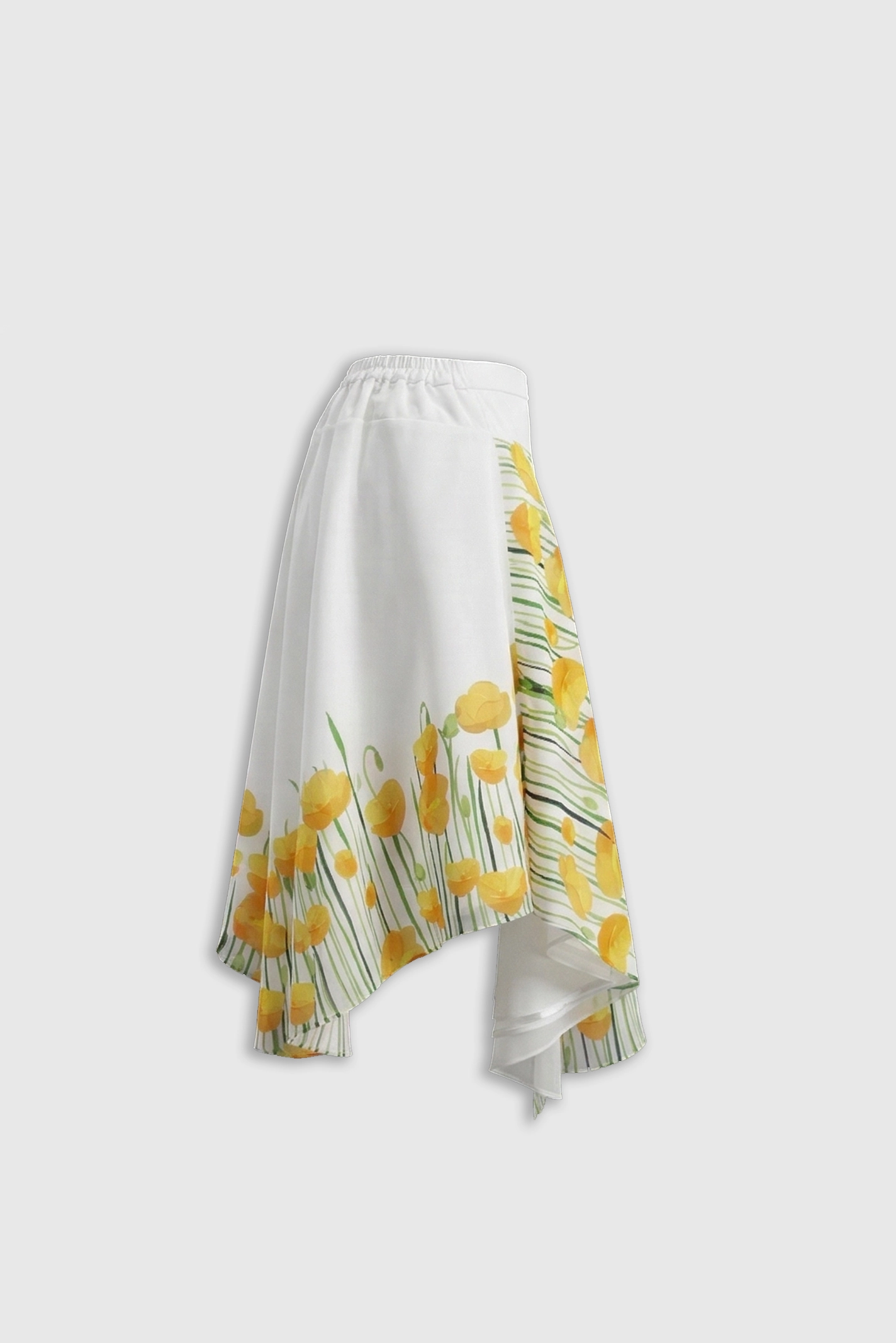 Segarkan tampilan harian Anda dengan XSML Meadow Hand-Painted Asymmetrical Skirt. Rok ini memadukan kemurnian warna putih dengan aksen bunga kuning yang cerah, menciptakan tampilan yang airy, feminin, dan penuh semangat.